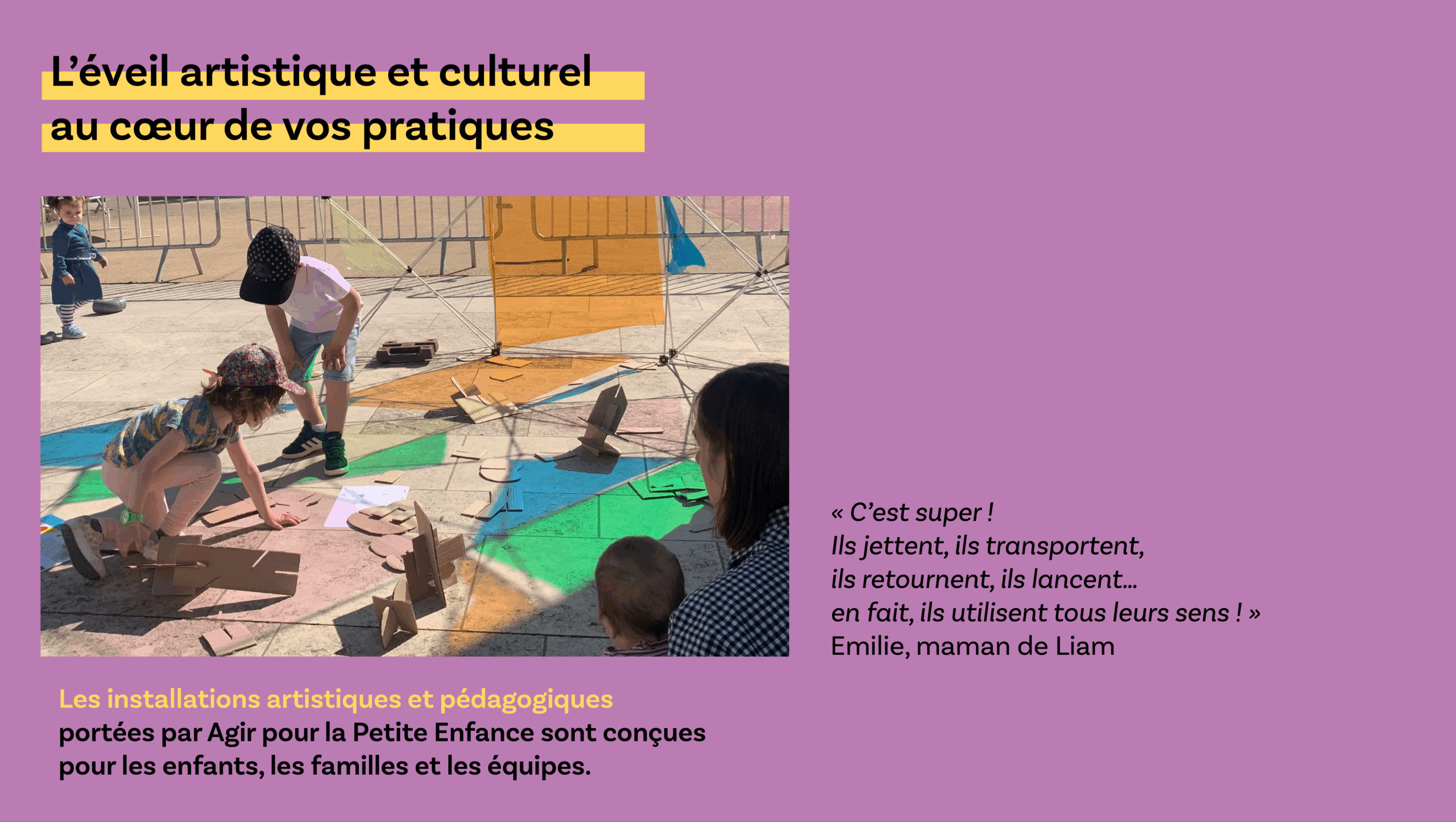 Agir pour la petite enfance fédère des partenaires engagés autour de pratiques éducatives innovantes, inclusives et ouvertes à l’éveil culturel et artistique dès le plus jeune âge.