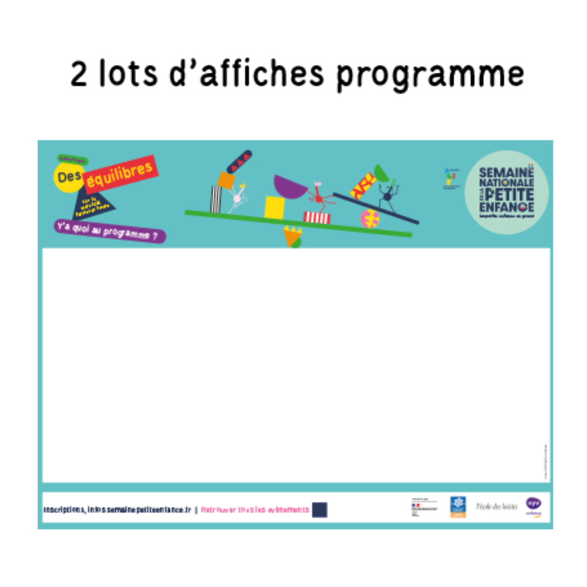 À noter : certaines CAF, CD, collectivités ou réseaux subventionnent le pack accompagnement à certaines conditions. Si votre structure est éligible, votre panier passera directement à 0 euro. Lors de votre inscription à la Semaine Nationale de la Petite Enfance, merci de remplir avec attention votre questionnaire.A noter : certaines CAF, CD, collectivités ou réseaux subventionnent la boîte pédagogique à certaines conditions. Si votre structure est éligible, votre panier passera directement à 0 euro. Lors de votre inscription à la Semaine Nationale de la Petite Enfance, merci de remplir avec attention votre questionnaire.