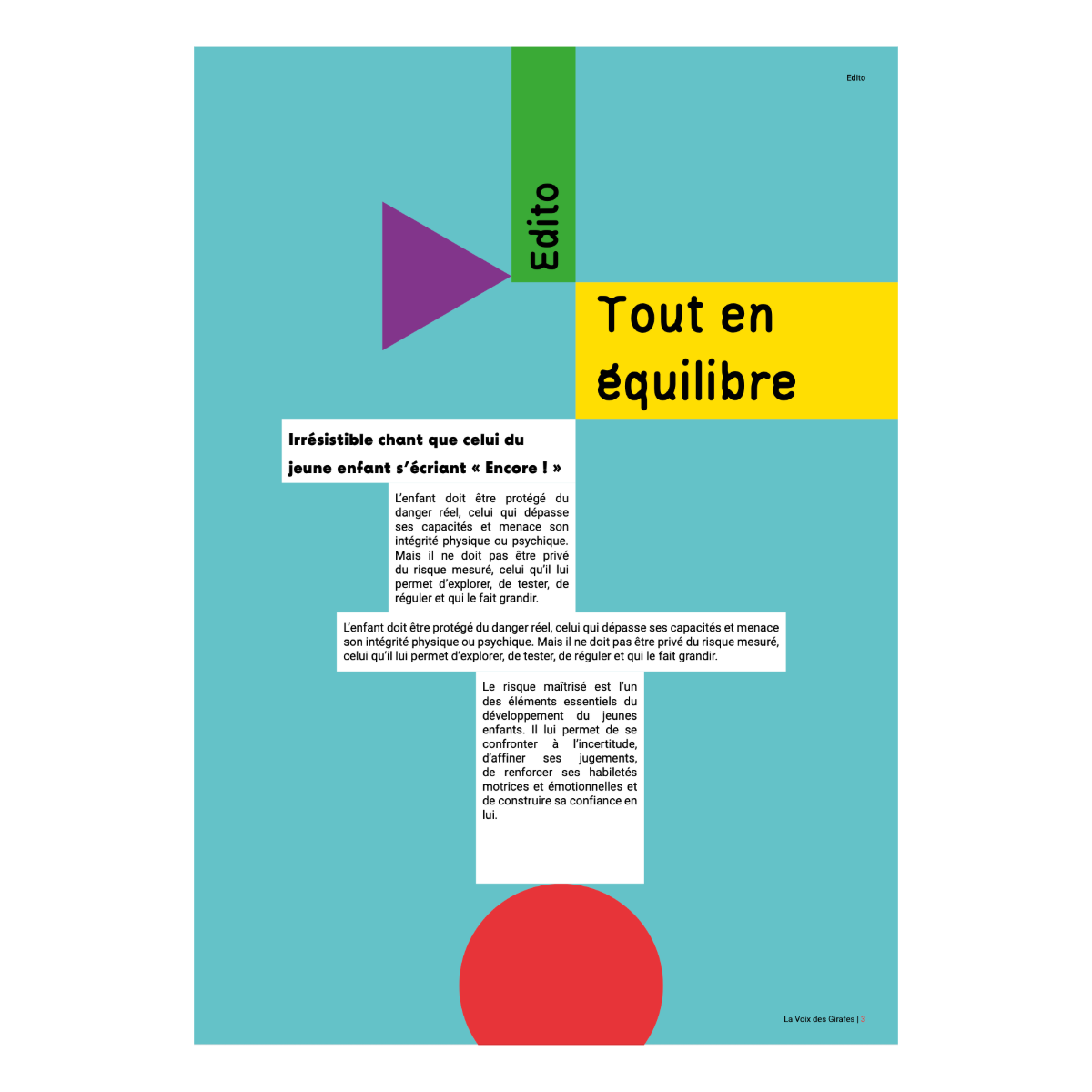 Le guide ressource composé d’articles de fond, d’éclairages pédagogiques ainsi que des ateliers à reproduire ou détourner sur le thème de l’année : « Des équilibres »