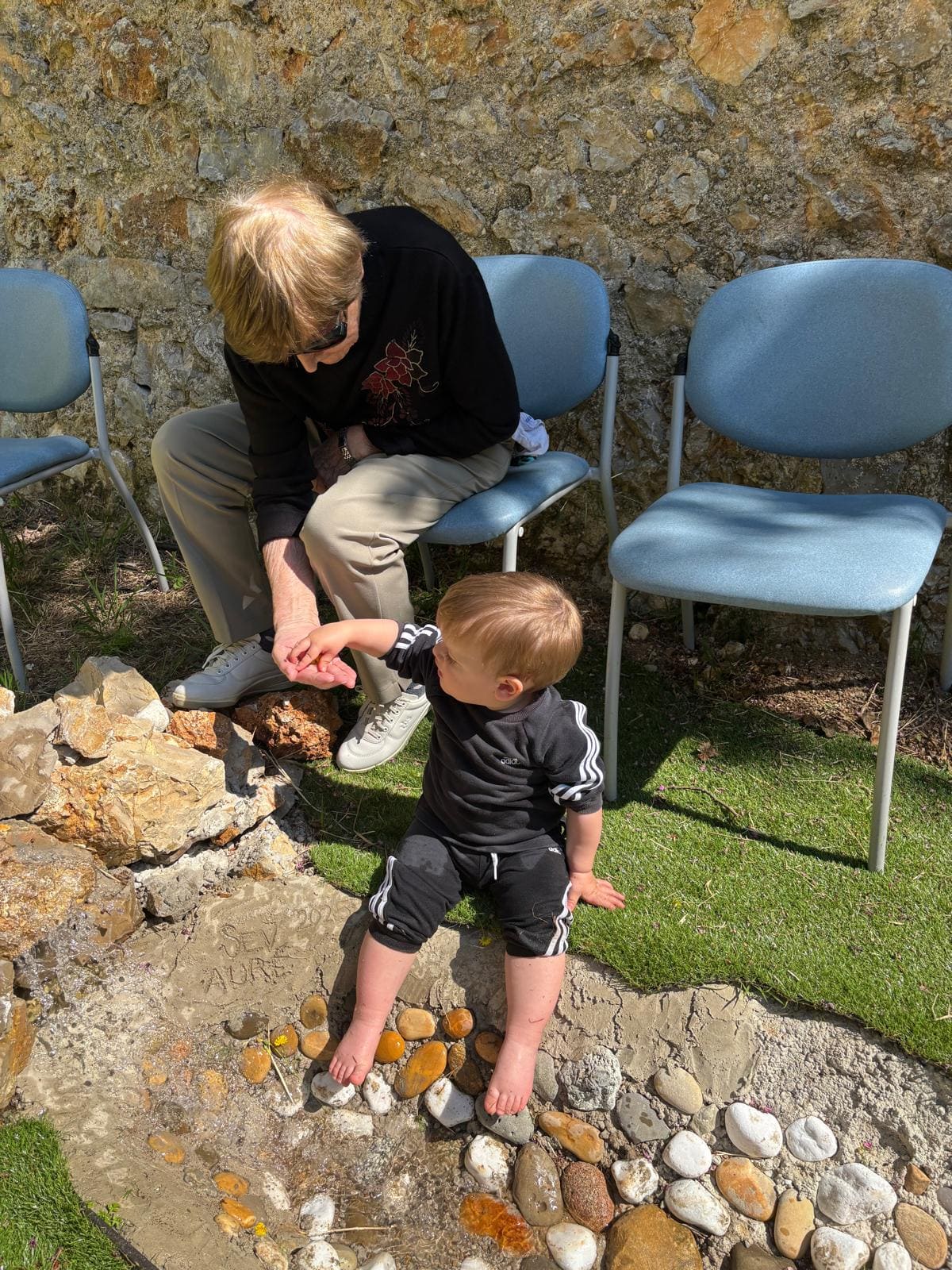 La rivière a aussi été un lieu de rencontre intergénérationnelle. Les résidents de l’EHPAD avaient fabriqué des petits bateaux en bouchons de liège, que les enfants faisaient flotter en riant : « Oh, ça coule ! » ; « Le bouchon part ! ». Ces échanges simples ont nourri une joie partagée, faite de curiosité et de complicité.